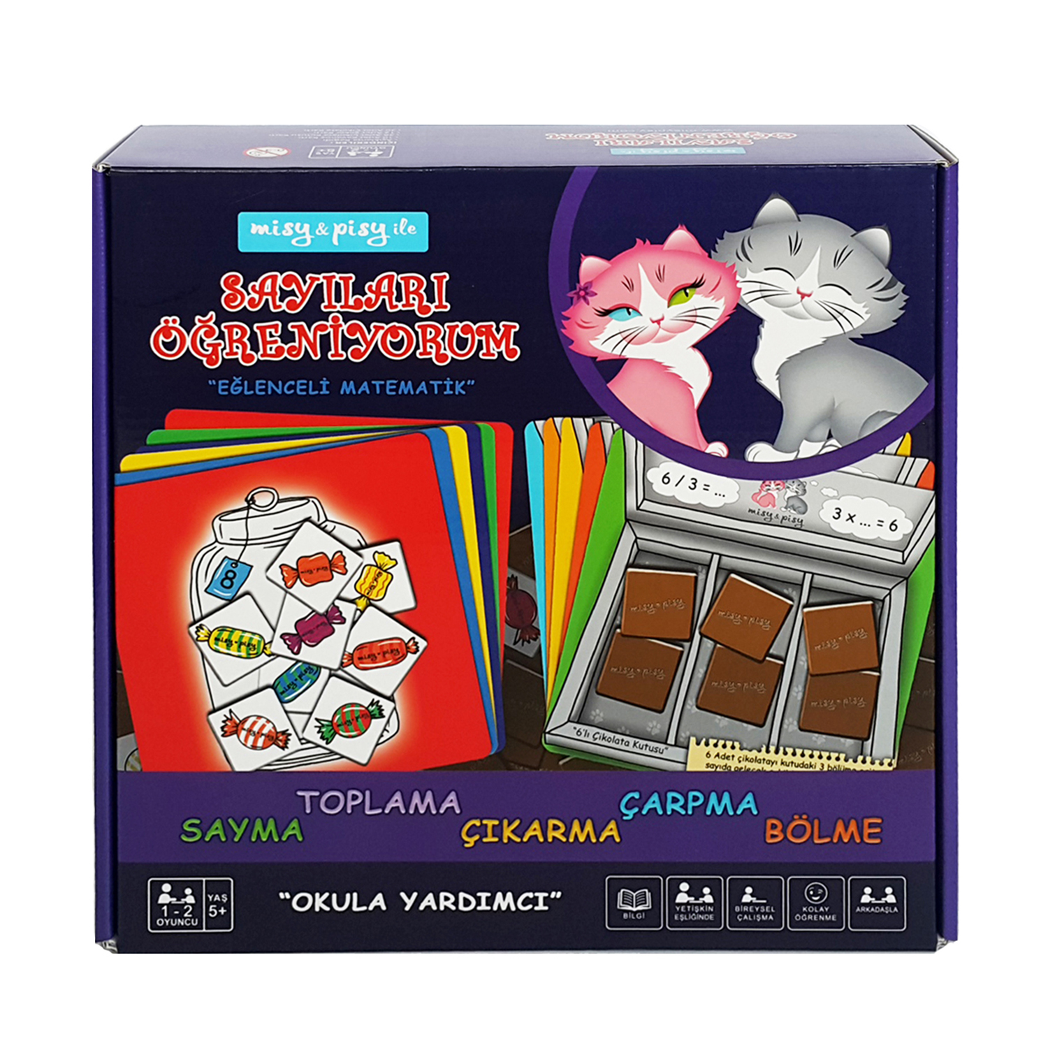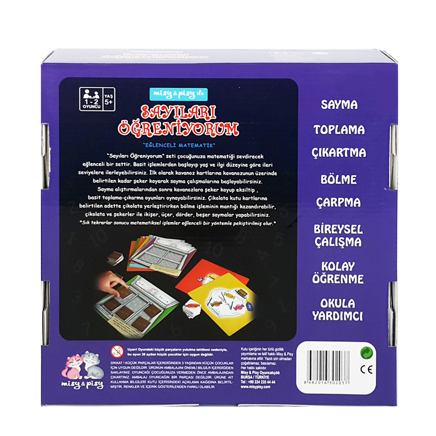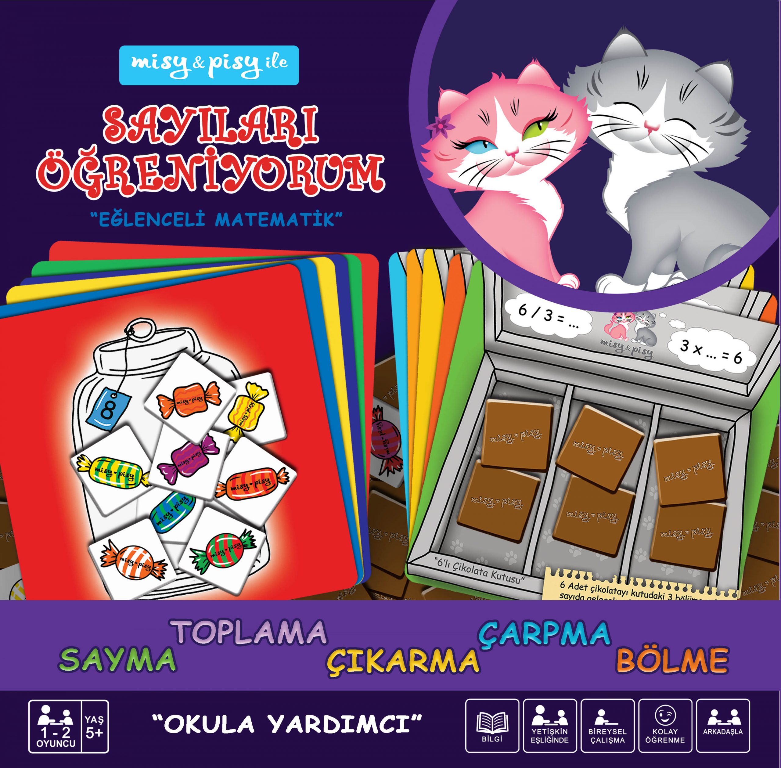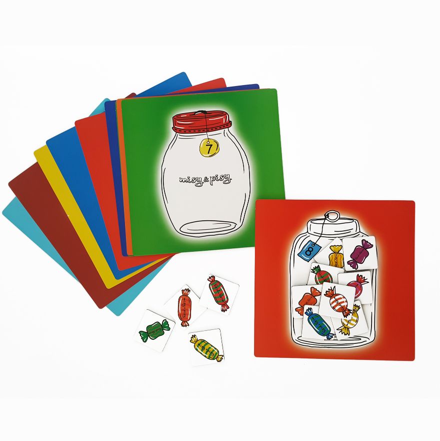 “Sayıları Öğreniyorum” seti çocuğunuza matematiği sevdirecek eğlenceli bir settir. Basit işlemlerden başlayıp yaş ve ilgi düzeyine göre ileri seviyelere ilerleyebilirsiniz. İlk olarak kavanoz kartlarına kavanozun üzerinde belirtilen kadar şeker koyarak sayma çalışmalarına başlayabilirsiniz. Sayma alıştırmalarından sonra kavanozlara şeker koyup eksiltip , basit toplama-çıkarma oyunları oynayabilirsiniz. Çikolata kutu kartlarına belirtilen adette çikolata yerleştirirken bölme işleminin mantığını kazandırabilir, çikolata ve şekerler ile ikişer, üçer, dörder, beşer saymalar yapabilirsiniz.